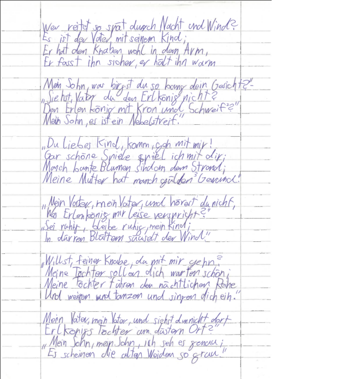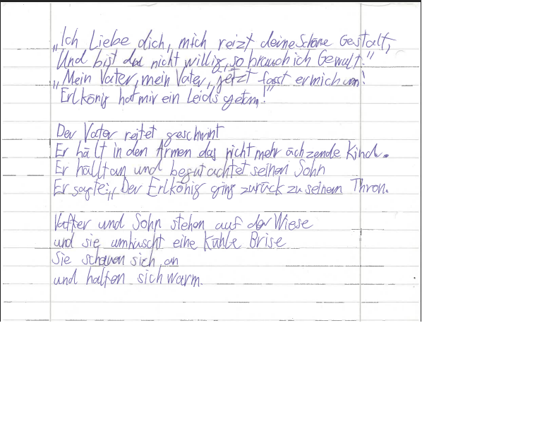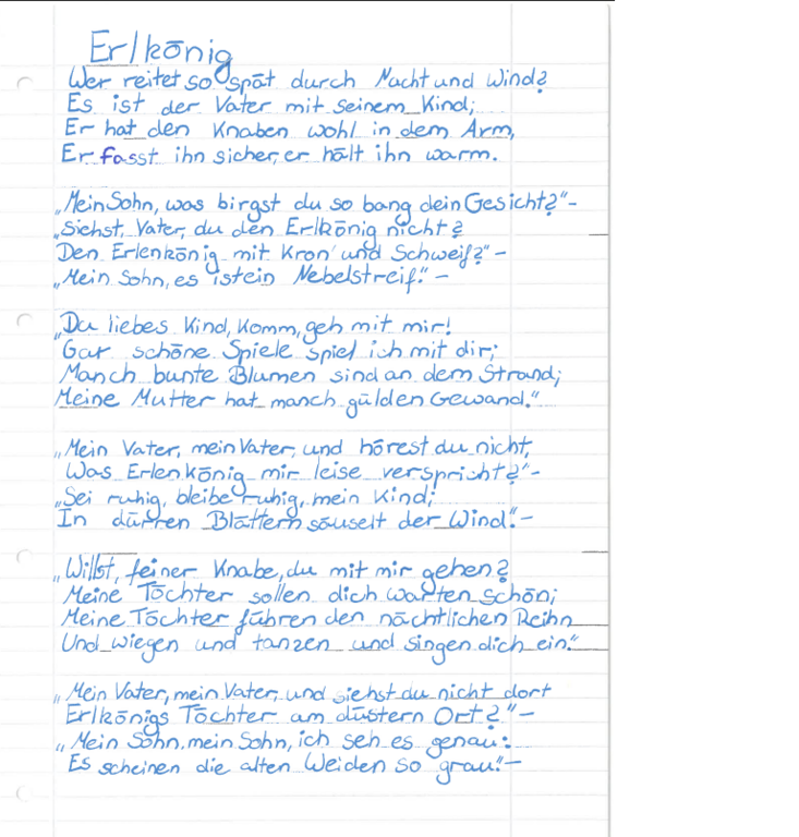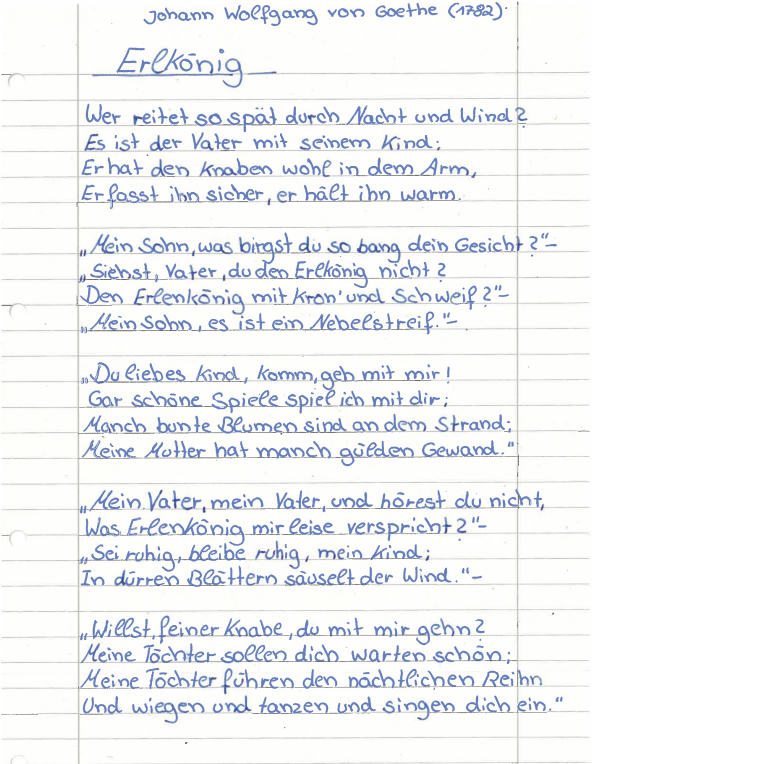In der 7a drehte sich im Deutschunterricht in den letzten Wochen alles um das Thema "Balladen". Dabei durfte ein Klassiker natürlich nicht fehlen: Goethes "Erlkönig". Gemeinsam wurde gelesen und analysiert - und schnell war klar: Dieses Ende ist ganz schön düster!