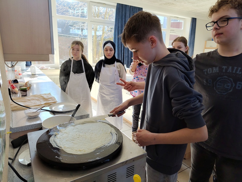 Ein Hauch von Frankreich wehte durch die Schule, als der Französischkurs des 6. Jahrgangs kurzerhand die Lehrbücher zur Seite legte und sich einer besonders genussvollen Unterrichtsstunde widmete: Crêpes backen!