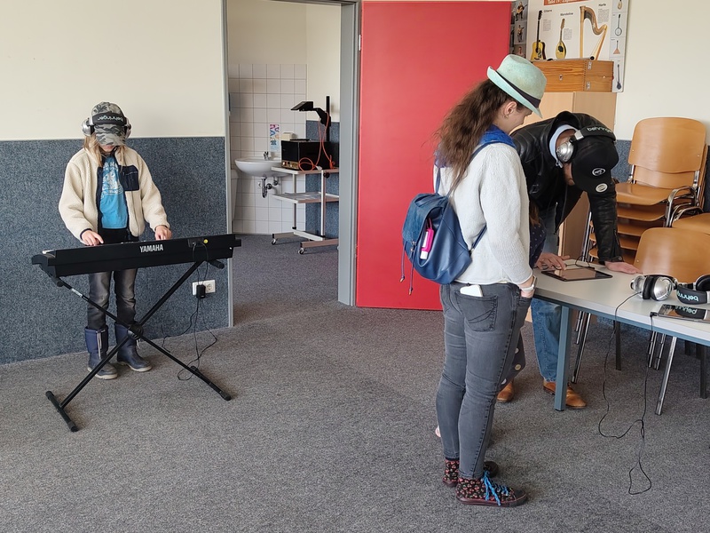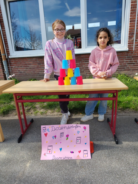 Auf dem Schulhof der Grundschule herrschte eine lebendige und fröhliche Atmosphäre: Verschiedene Spielangebote luden zum Mitmachen ein und sorgten für Begeisterung bei den jüngeren Gästen. Im Musikraum konnten Instrumente ausprobiert werden, während in den naturwissenschaftlichen Fachräumen kleine Experimente zum Staunen und Mitdenken anregten.