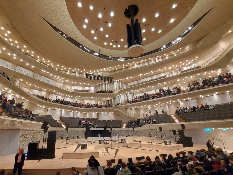 Der 7. Jahrgang der GOBS Nordkehdingen (7a und 7b) hat sich direkt nach den Osterferien auf den Weg nach Hamburg gemacht. Ziel: Eines der berümtesten Konzerthäuser der Welt, die Elbphilharmonie. Schon die Anreise mit der S-Bahn war für viele von uns ein kleines Abenteuer. Spätestens beim Anblick des beeindruckenden Gebäudes war klar: Das wird ein besonderer Tag! Nach einem kurzen Rundgang über die "Plaza" erwartete uns im "Großen Saal" dann das Schulkonzert „Masters of Ceremony“. Dabei traf das Streichensemble "Ensemble Resonanz" auf Tänzer und Künstler der "Hip-Hop-Akademie Hamburg". Gemeinsam haben sie ein Stück entwickelt, das auf der Musik von Igor Stravinsky basiert – genauer gesagt auf „Apollon Musagète“ aus dem Jahr 1928. Klingt erstmal nach klassischem Konzert, wurde aber ziemlich modern umgesetzt - mit Hip-Hop, Tanz und jeder Menge überraschender Momente. Ehrlich gesagt: Es war teilweise etwas ungewohnt und nicht immer leicht zu verstehen. Manchmal wussten wir gar nicht so genau, wann man klatschen darf. Trotzdem fanden viele die Mischung spannend – vor allem die Hip-Hop-Parts und die besondere Atmosphäre im Saal kamen richtig gut an. Nach dem Konzert ging’s noch weiter in die HafenCity und ins "Westfield Shopping Center", wo wir ein bisschen Freizeit genießen konnten. Danach traten wir die Rückfahrt an, diesmal mit vielen neuen Eindrücken im Gepäck. Begleitet wurde der Ausflug von Herrn Rathmann, Frau Thomas und Herrn Schönbeck, die diesen spannenden Tag organisiert hatten. Fazit: Definitiv eine Erfahrung, die man so schnell nicht vergisst! Text und Bild H. Rathmann